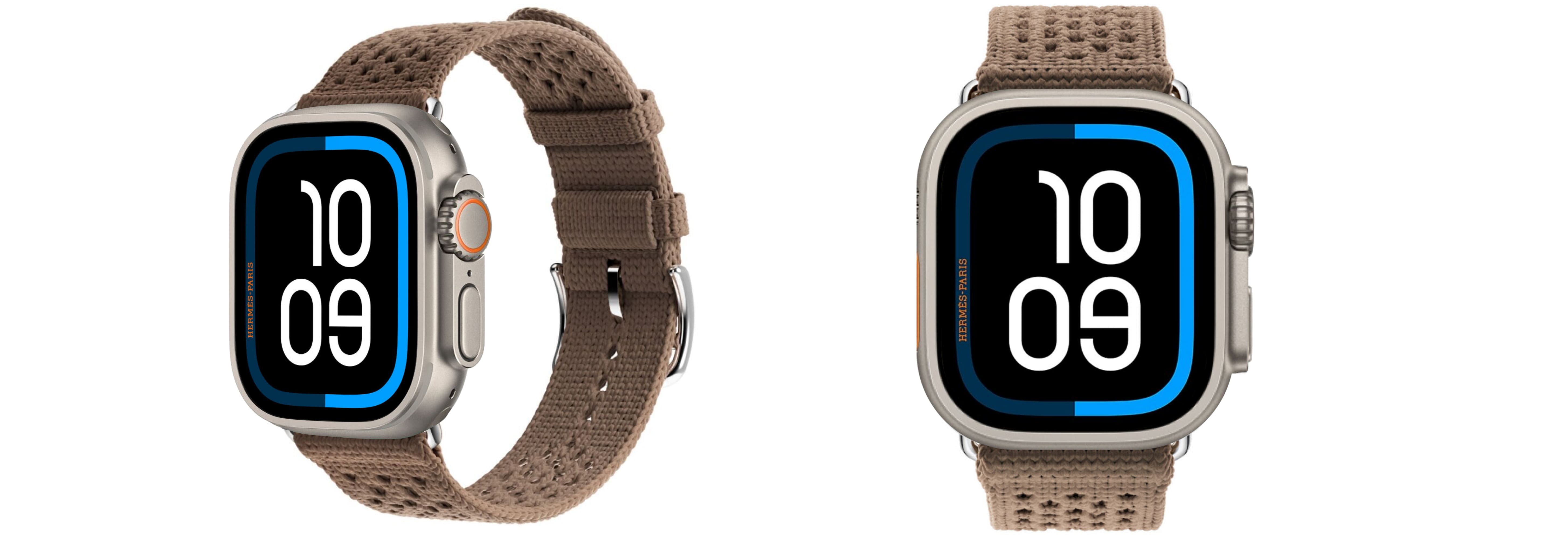 Apple Watch Ultra 3 Hermes 49mm Titanium, ремешок из текстильного трикотажа коричневый