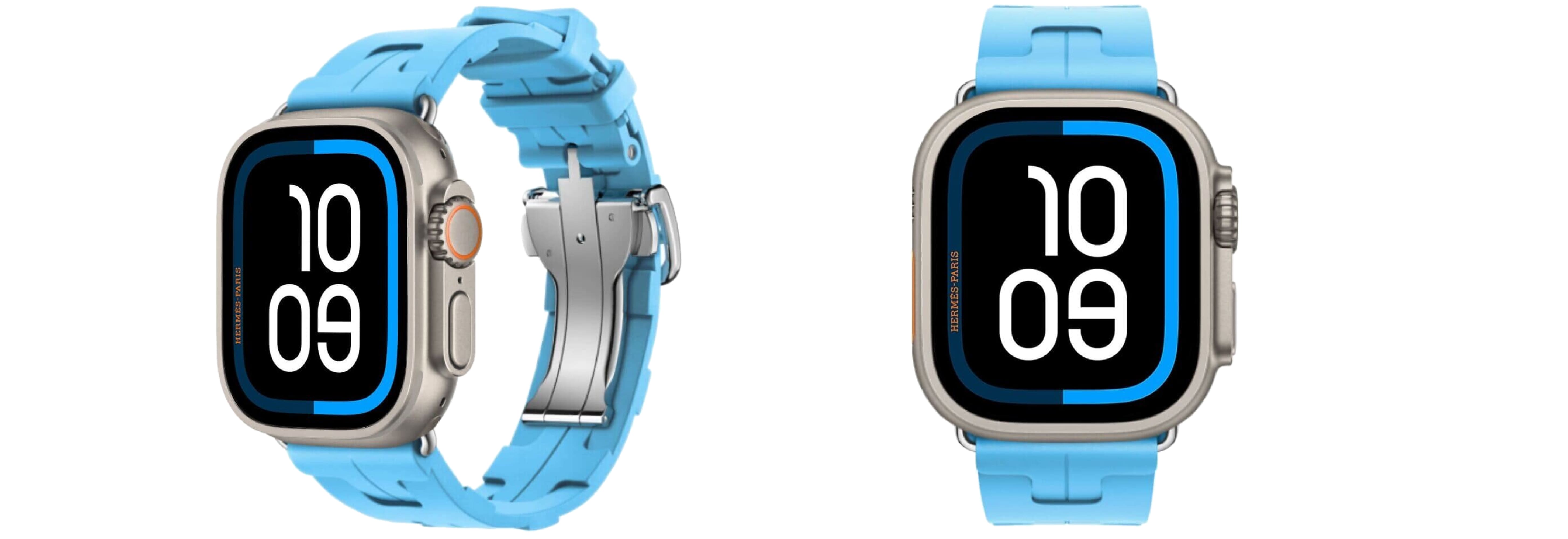 - Hermès-ремешки (Ultra 3, 49 мм): Scub’H Diving (Single Tour, высокопроизводительный эластомер, титановые пряжки); En Mer (Ultra Single Tour, водостойкий трикотаж с узором волны).