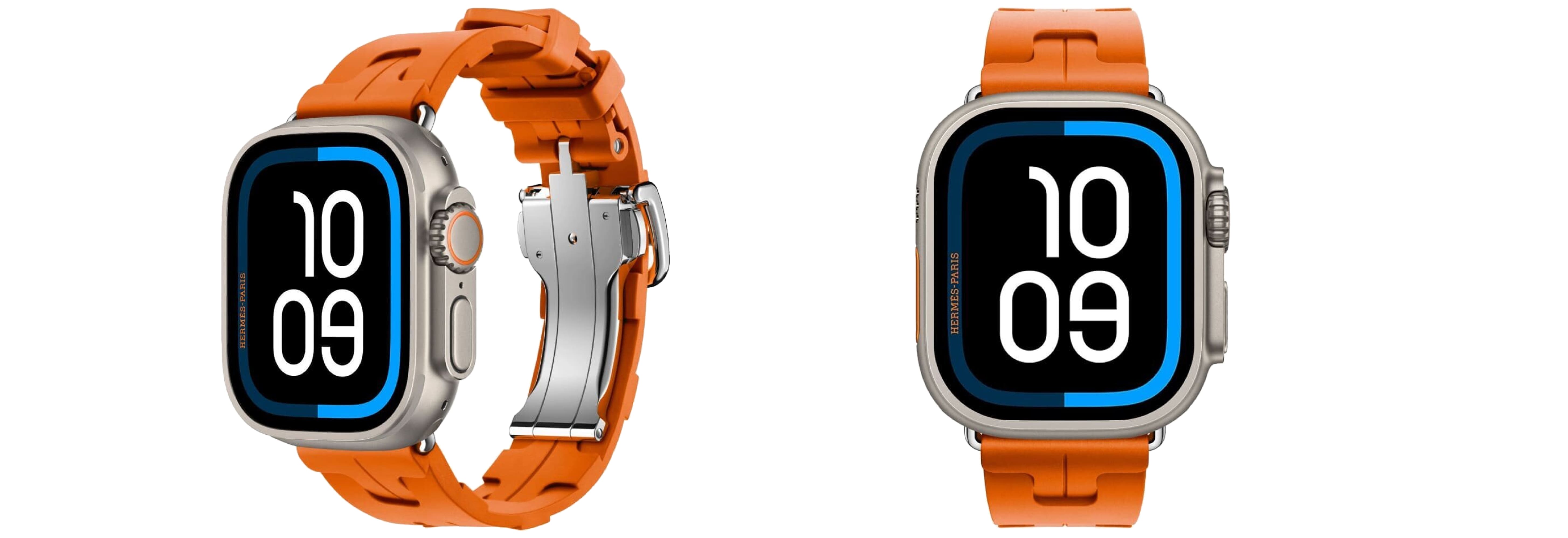 - Hermès-ремешки (Ultra 3, 49 мм): Scub’H Diving (Single Tour, высокопроизводительный эластомер, титановые пряжки); En Mer (Ultra Single Tour, водостойкий трикотаж с узором волны).