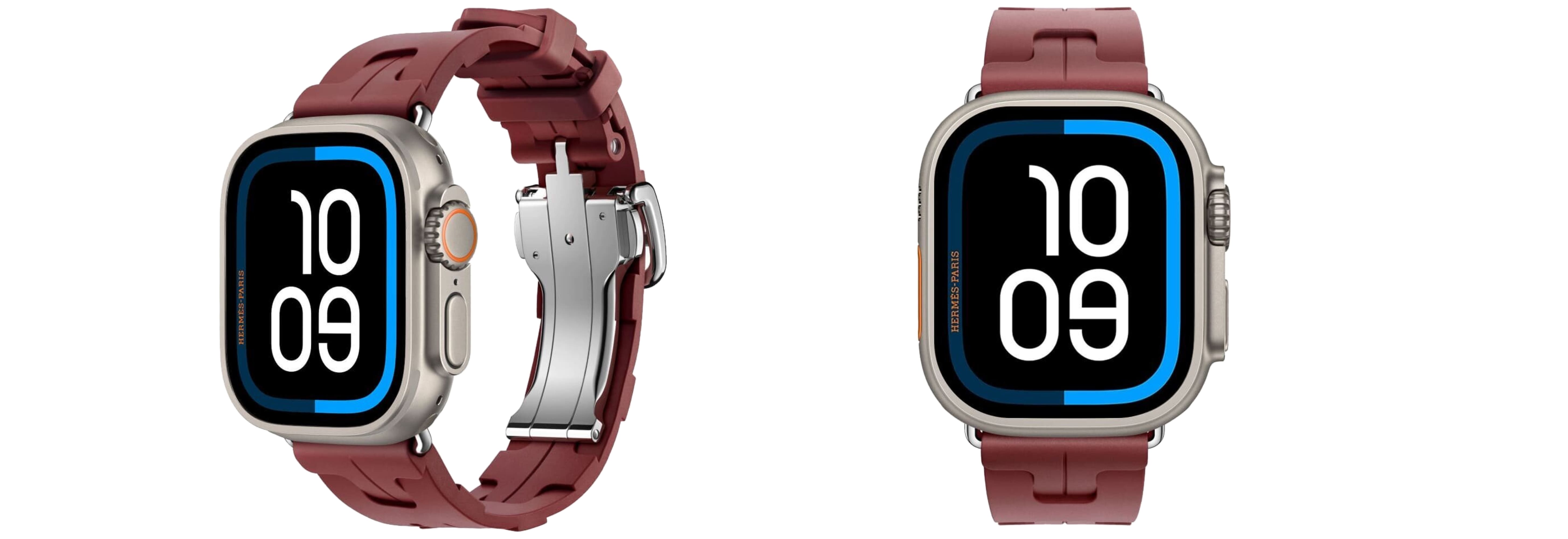 - Hermès-ремешки (Ultra 3, 49 мм): Scub’H Diving (Single Tour, высокопроизводительный эластомер, титановые пряжки); En Mer (Ultra Single Tour, водостойкий трикотаж с узором волны).