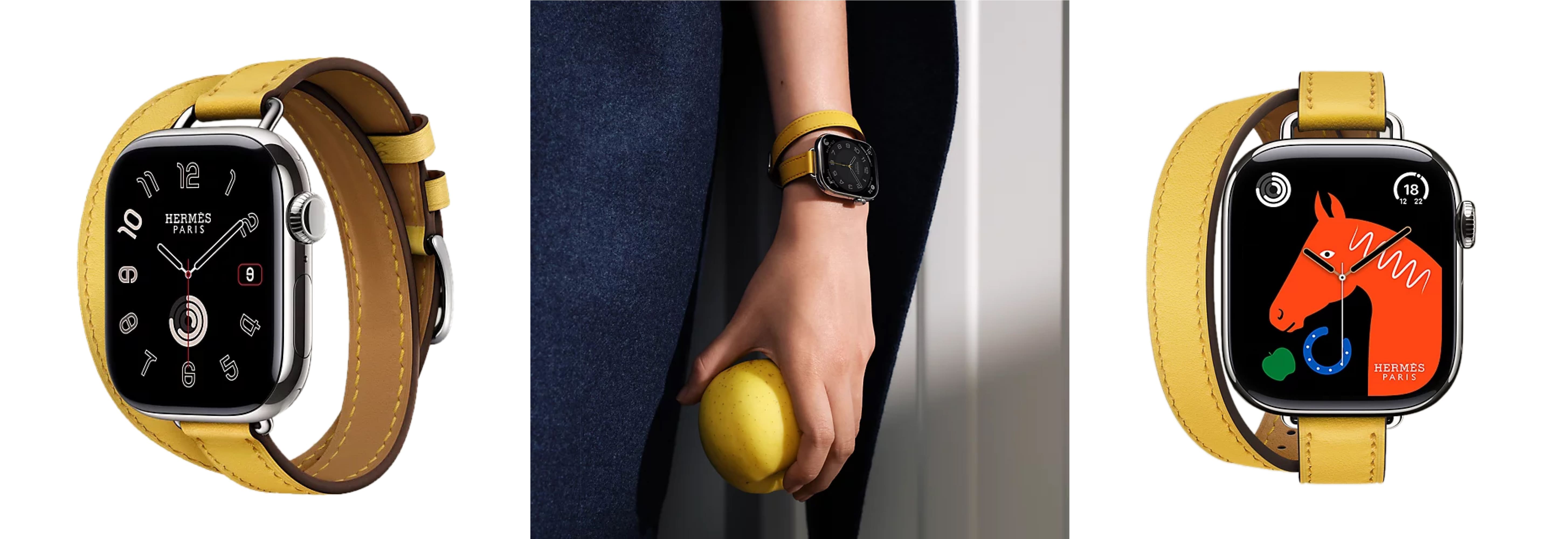 Apple Watch Hermes Series 11 42mm, двойной тонкий желтый кожаный ремешок