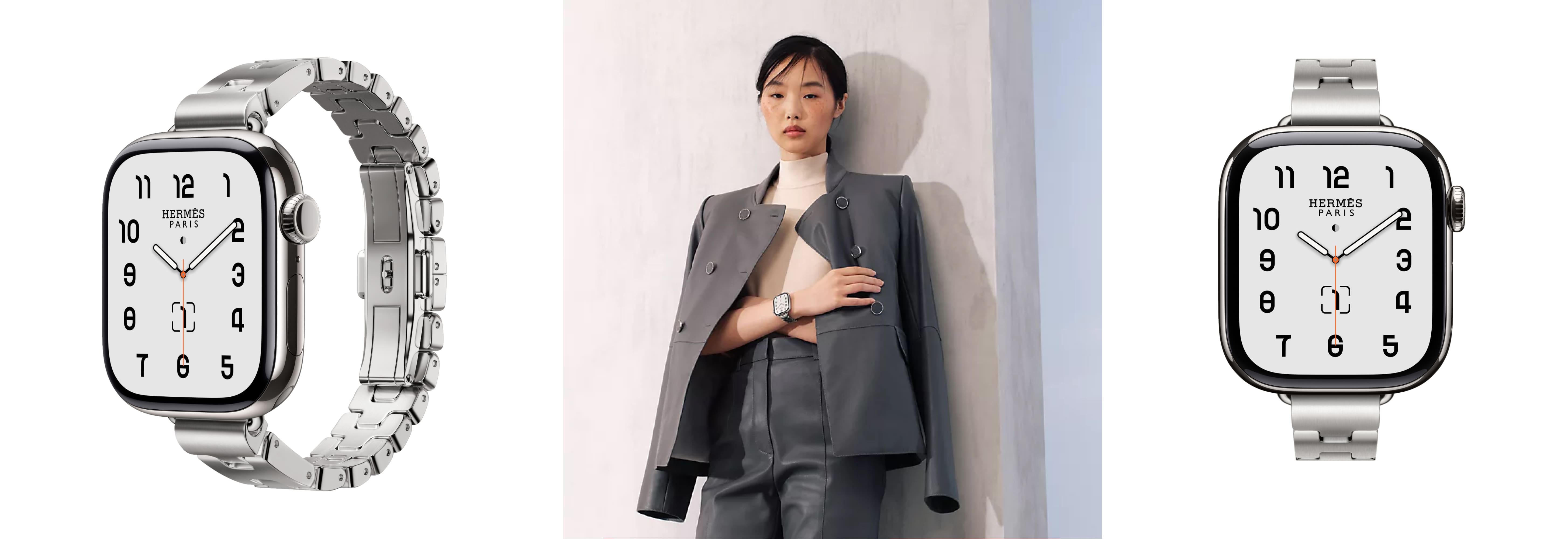 Apple Watch Hermes Series 11 42mm, блочный стальной тонкий браслет (M)
