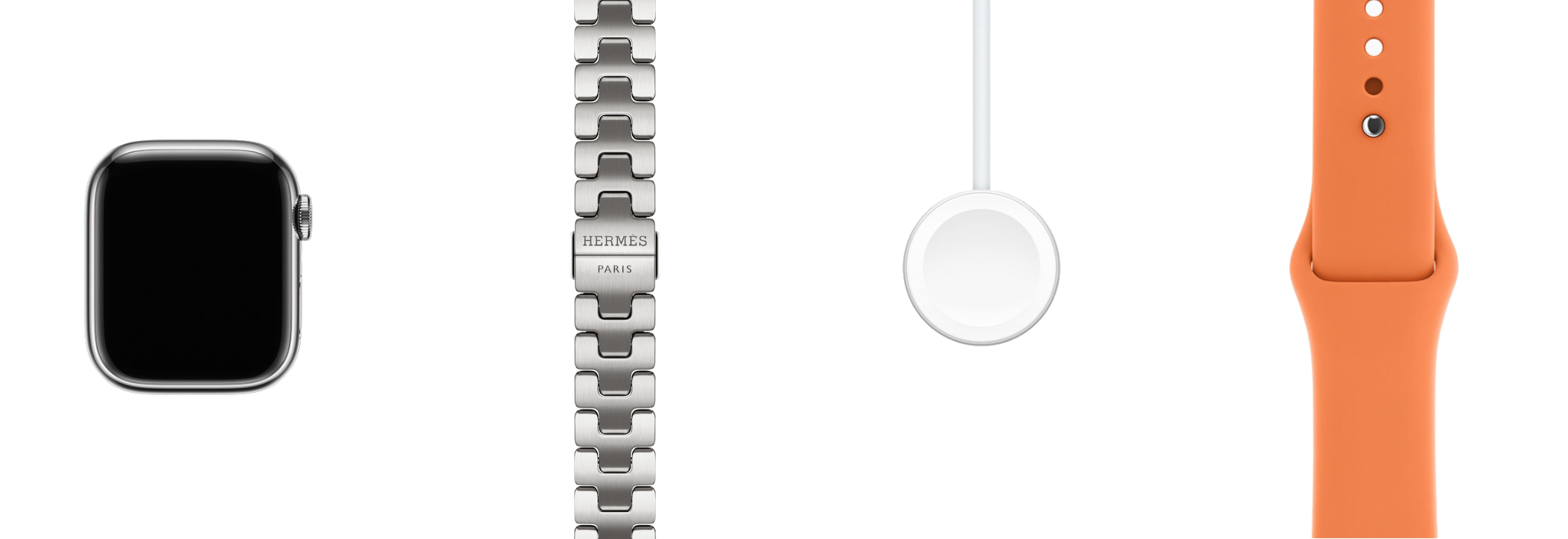 - Hermès-особенности: эксклюзивные циферблаты Hermès (в т.ч. Radial, Circulaire, Faubourg Party с 24 анимациями); фирменные ремешки Hermès (Kilim Single Tour, Satiné Grand H/Grand H Fin, Toile H Single Tour, Twill Jump Attelage и др.)