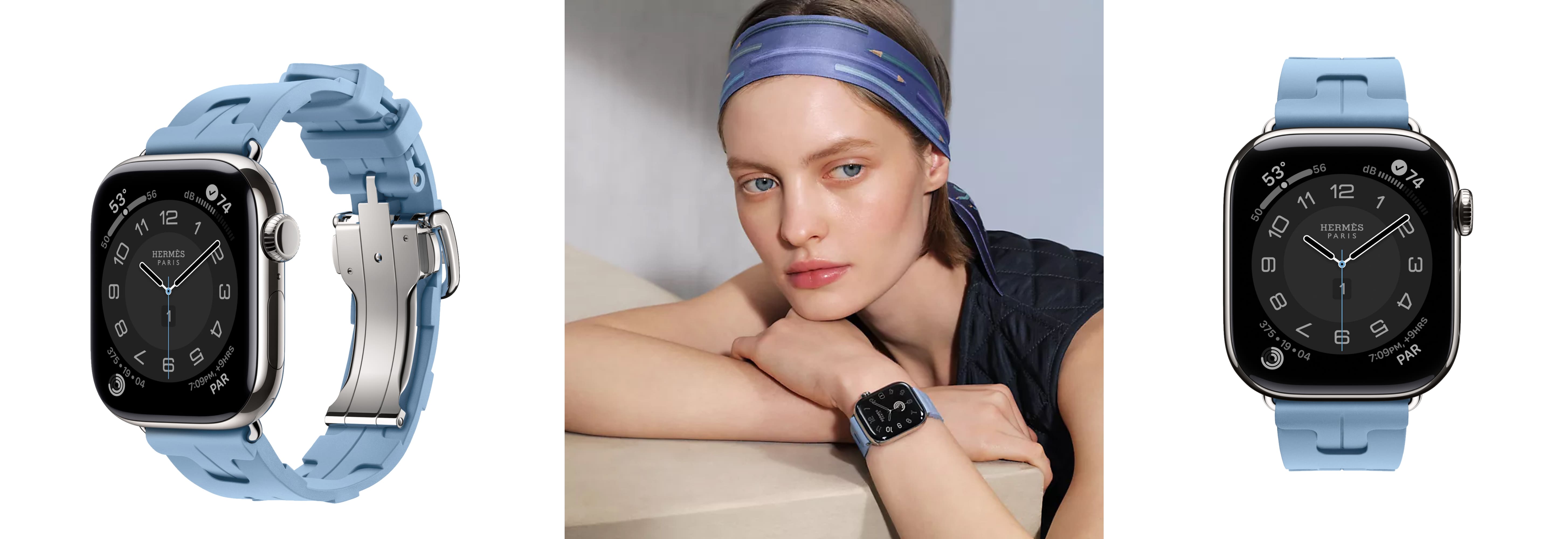 - Hermès-особенности: эксклюзивные циферблаты Hermès (в т.ч. Radial, Circulaire, Faubourg Party с 24 анимациями); фирменные ремешки Hermès (Kilim Single Tour, Satiné Grand H/Grand H Fin, Toile H Single Tour, Twill Jump Attelage и др.)