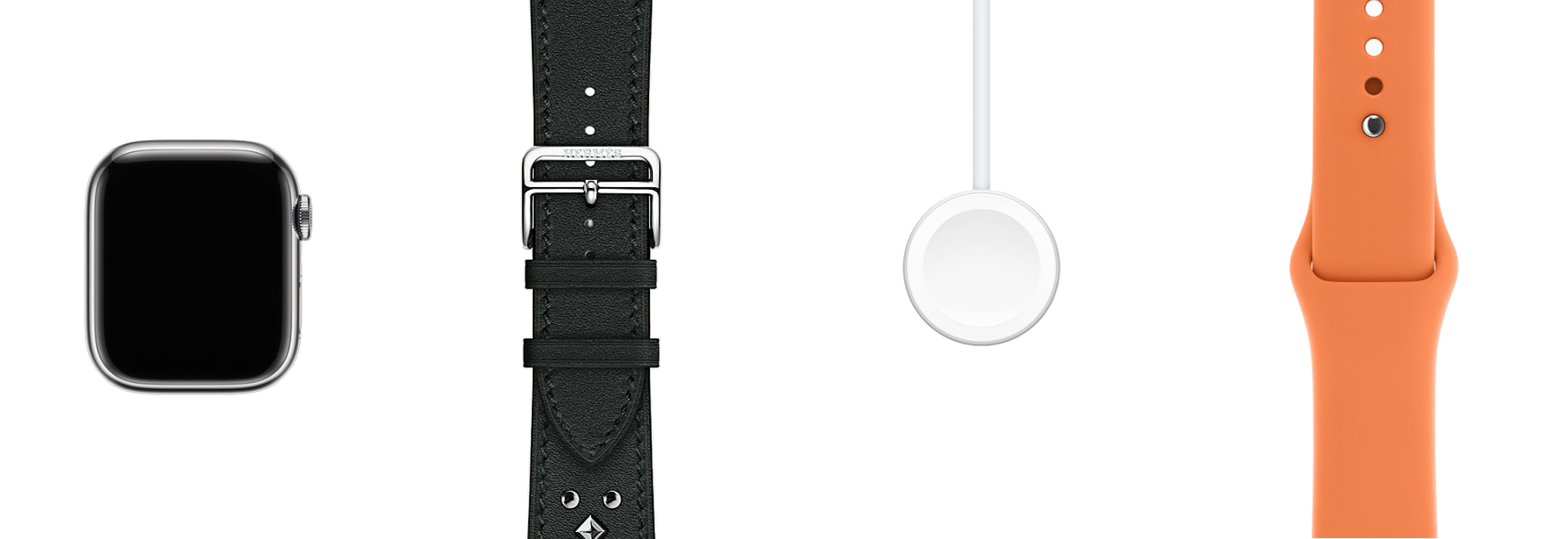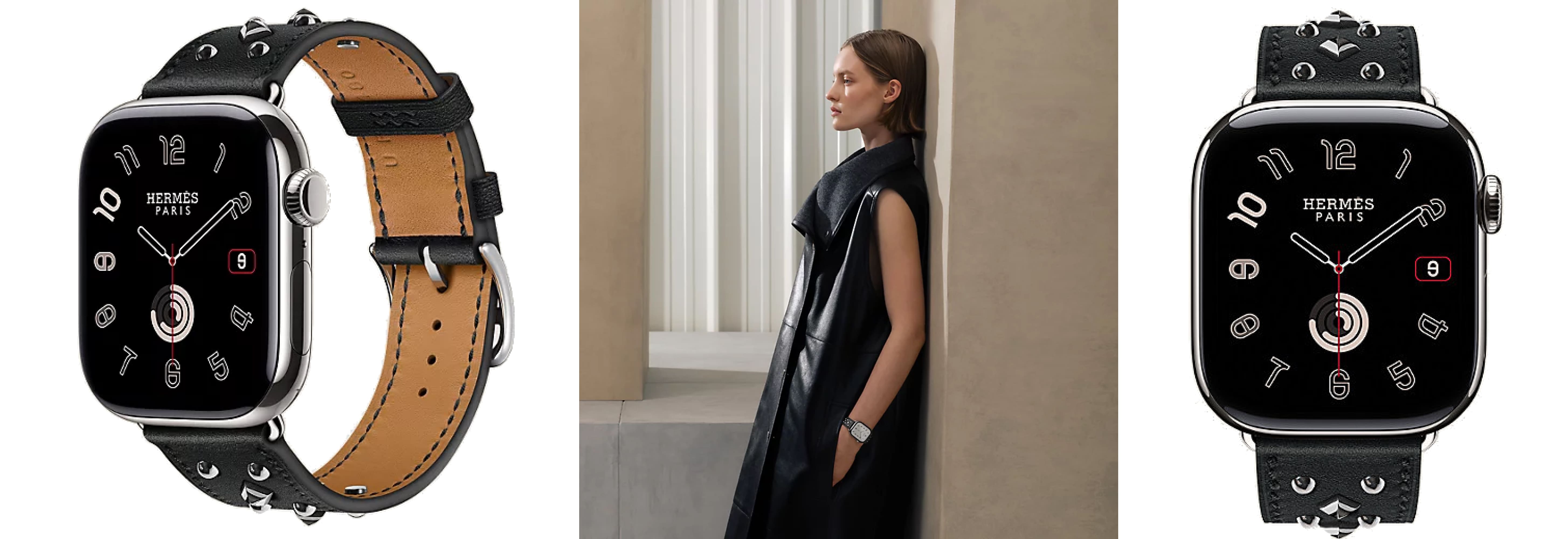 - Hermès-особенности: эксклюзивные циферблаты Hermès (в т.ч. Radial, Circulaire, Faubourg Party с 24 анимациями); фирменные ремешки Hermès (Kilim Single Tour, Satiné Grand H/Grand H Fin, Toile H Single Tour, Twill Jump Attelage и др.)