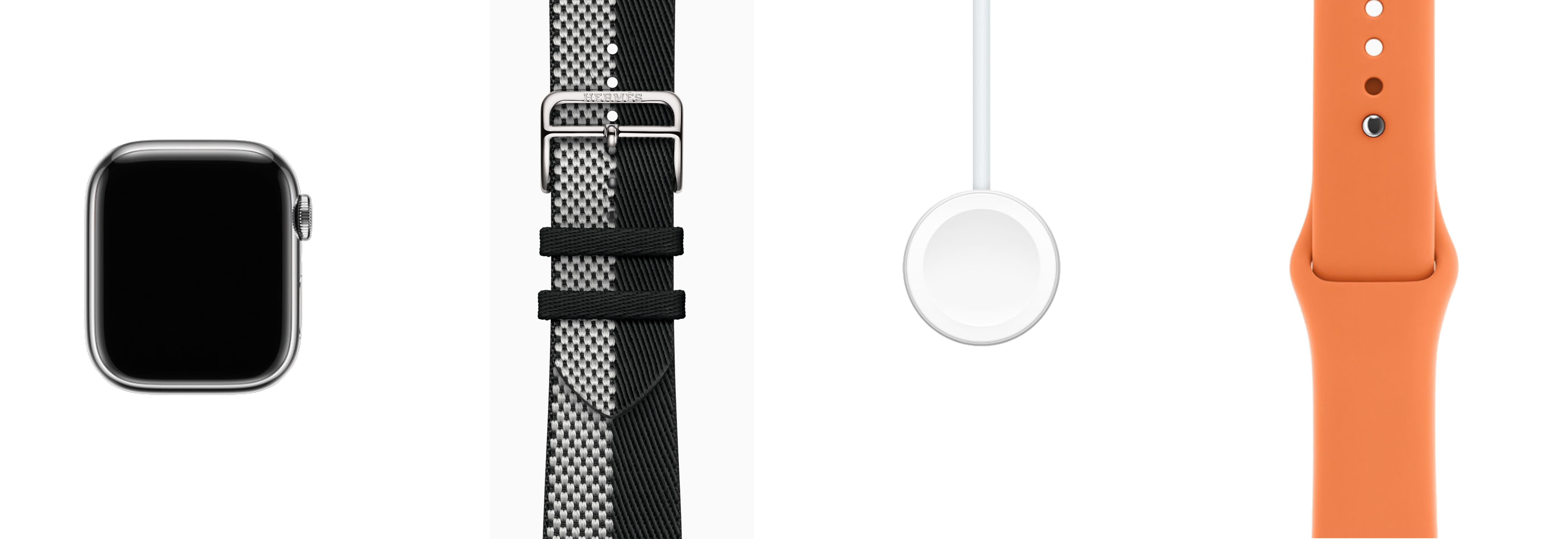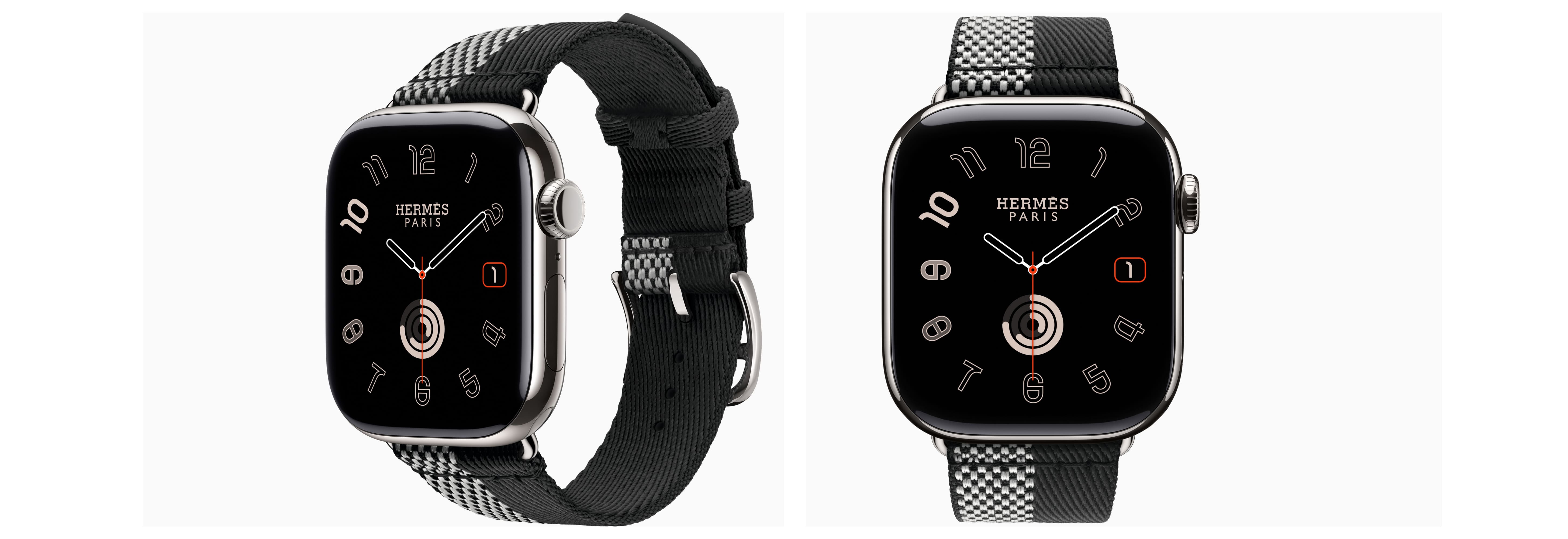 - Hermès-особенности: эксклюзивные циферблаты Hermès (в т.ч. Radial, Circulaire, Faubourg Party с 24 анимациями); фирменные ремешки Hermès (Kilim Single Tour, Satiné Grand H/Grand H Fin, Toile H Single Tour, Twill Jump Attelage и др.)