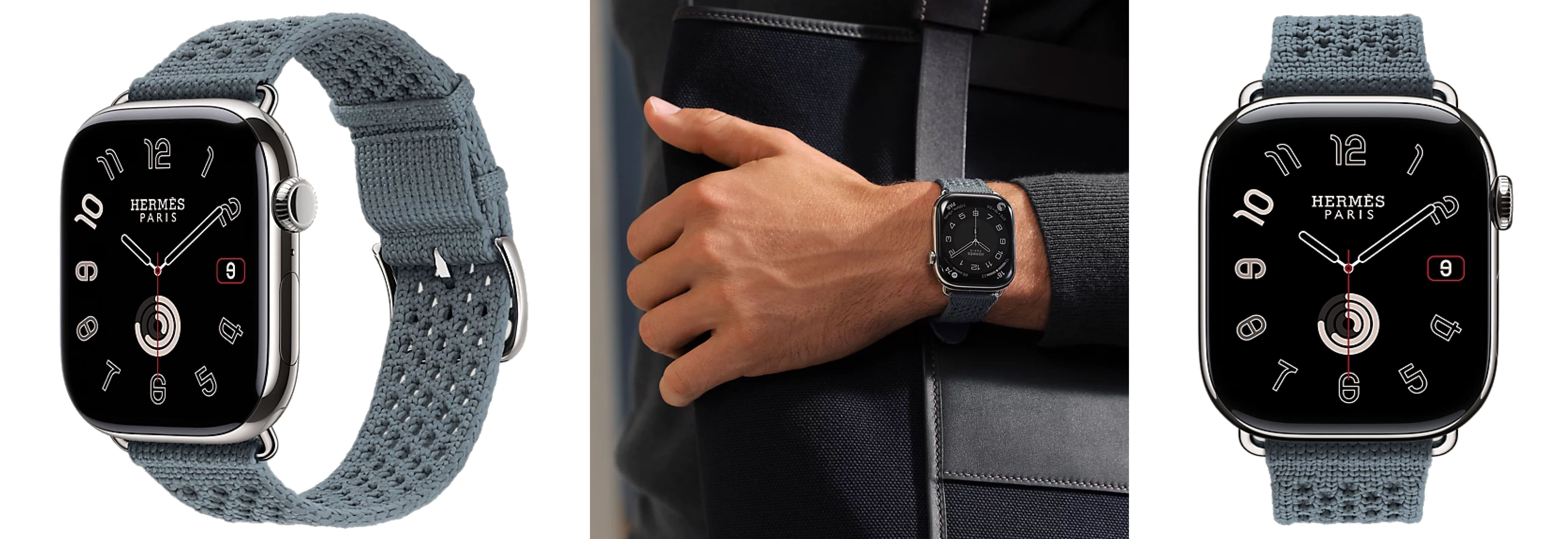 Apple Watch Hermes Серии 11 со стальным корпусом и ремешком Bleu Gris Neo Tricot - это не просто часы, это стильный аксессуар, который подчеркнет вашу индивидуальность.