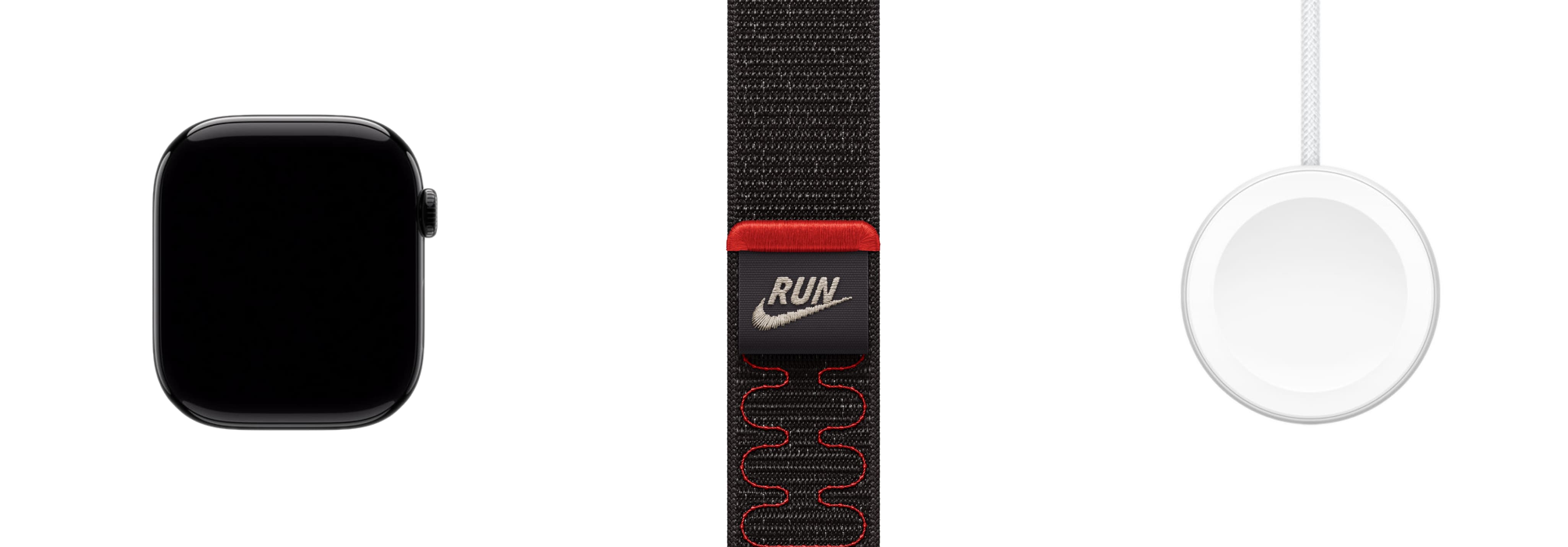 - Nike-элементы: ремешки Nike Sport Band (перфорация, уникальный узор из переработанных фрагментов, штифт с гравировкой Run Swoosh) и Nike Sport Loop (мягкое полотно с отражающей нитью и язычком-петлёй); эксклюзивные циферблаты Nike (включая Globe) и интеграция Nike Run Club с планами, аудиозабегами и подсказками