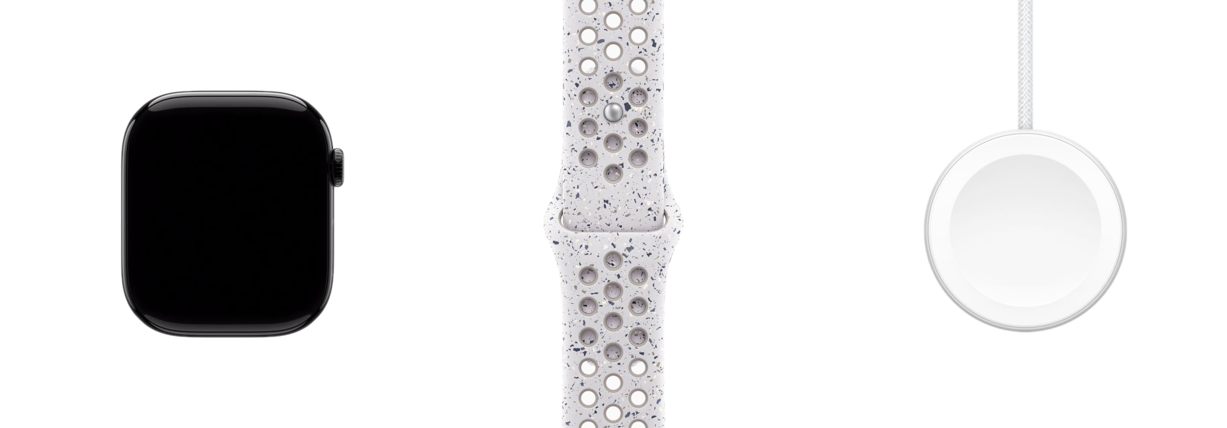 - Nike-элементы: ремешки Nike Sport Band (перфорация, уникальный узор из переработанных фрагментов, штифт с гравировкой Run Swoosh) и Nike Sport Loop (мягкое полотно с отражающей нитью и язычком-петлёй); эксклюзивные циферблаты Nike (включая Globe) и интеграция Nike Run Club с планами, аудиозабегами и подсказками