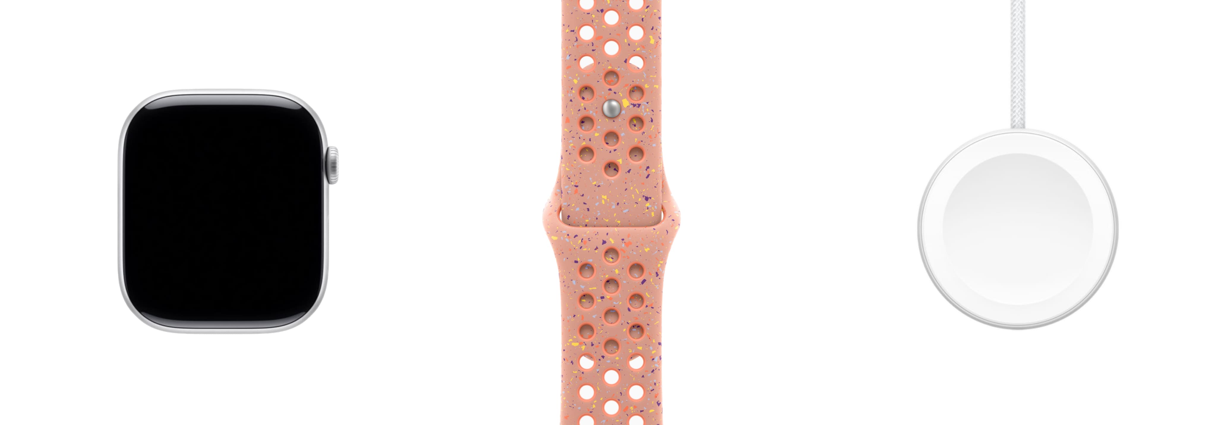 - Nike-элементы: ремешки Nike Sport Band (перфорация, уникальный узор из переработанных фрагментов, штифт с гравировкой Run Swoosh) и Nike Sport Loop (мягкое полотно с отражающей нитью и язычком-петлёй); эксклюзивные циферблаты Nike (включая Globe) и интеграция Nike Run Club с планами, аудиозабегами и подсказками