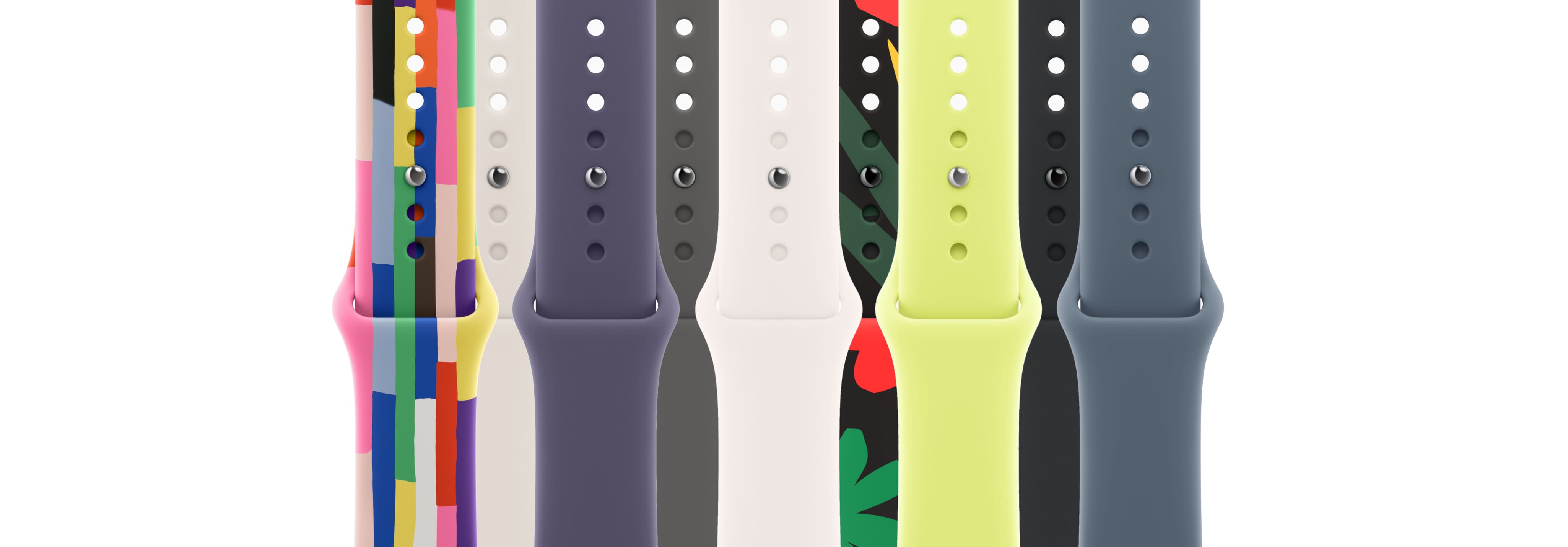 Apple Sport Band — ремешок из высокопрочного фторэластомера (fluoroelastomer): гладкий на ощупь, эластичный и стойкий к износу. Материал устойчив к поту, влаге и перепадам температуры, легко очищается и долго сохраняет цвет. Фирменная застёжка pin-and-tuck обеспечивает надёжную фиксацию без выступающих элементов и комфорт на весь день — от тренировки до офиса. Шелковистая поверхность не цепляет одежду и деликатна к коже, а точная геометрия отверстий помогает быстро настроить посадку.