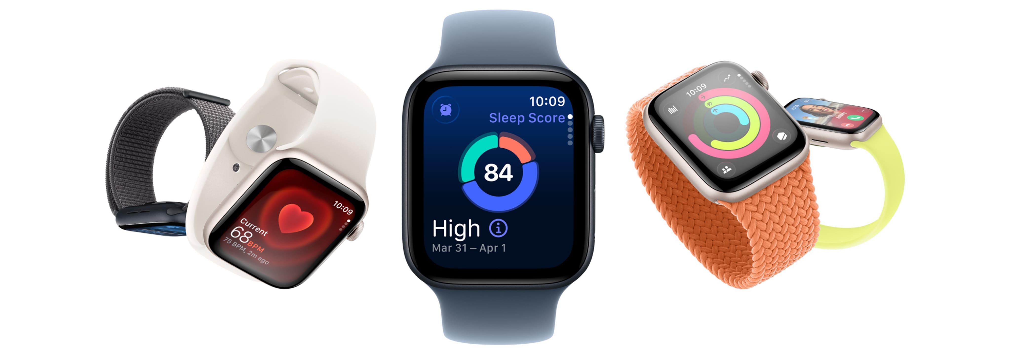 - Датчики и здоровье: оптический датчик сердечного ритма; уведомления о нерегулярном ритме; отслеживание сна со стадиями; температурные тренды на запястье