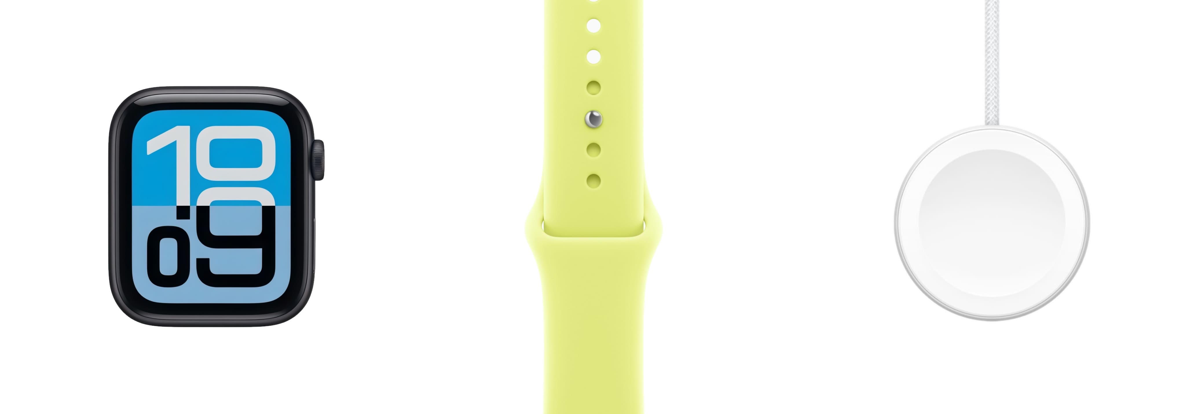 Apple Watch SE 3 40 мм, алюминиевые черного цвета, силиконовый спортивный ремешок желтого неонового цвета