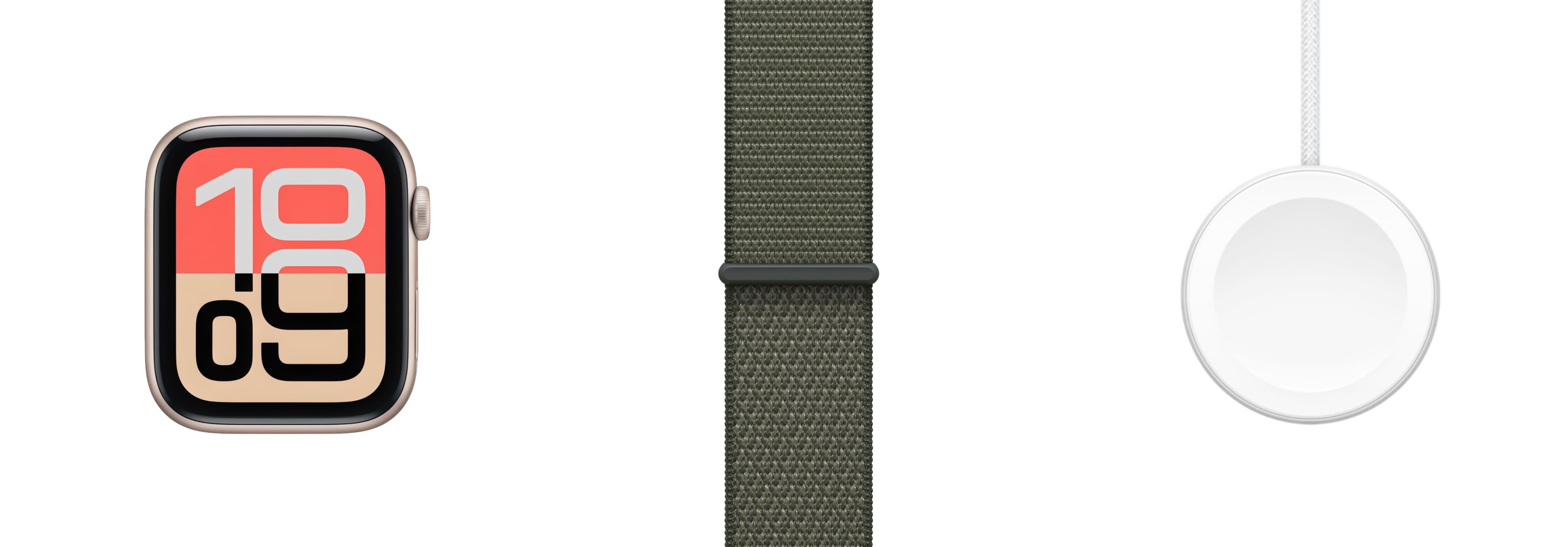 Apple Watch SE 3 40mm, Starlight Aluminum Case with Sport Loop - Forest
