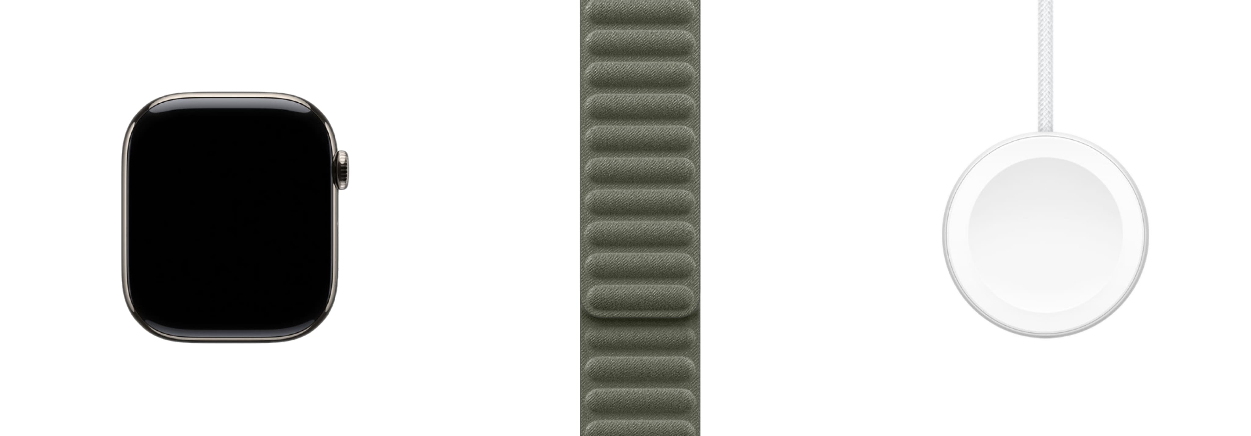 Apple Magnetic Link — элегантный ремешок из материала FineWoven (микротвил с бархатистым, «замшевым» ощущением), в который встроены гибкие сегменты с мощными магнитами. Конструкция обвивает запястье и фиксируется без пряжек и отверстий: достаточно поднести концы друг к другу, чтобы ремешок плотно и равномерно сел. Магнитные секции позволяют быстро подстроить размер «на лету» — после тренировки, в дороге или за рабочим столом — сохраняя тонкий профиль под манжетой. Поверхность устойчива к ежедневным касаниям и не цепляет ткань, а аккуратно обработанные кромки поддерживают аккуратный вид при длительном ношении.