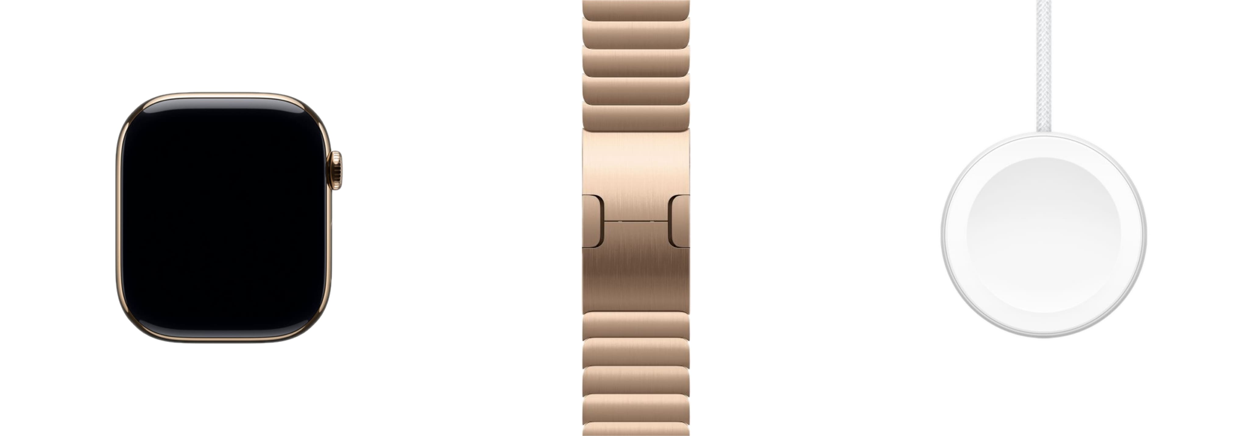 Apple Watch Series 11 46 мм титановые золотого цвета, стальной блочный браслет золотого цвета