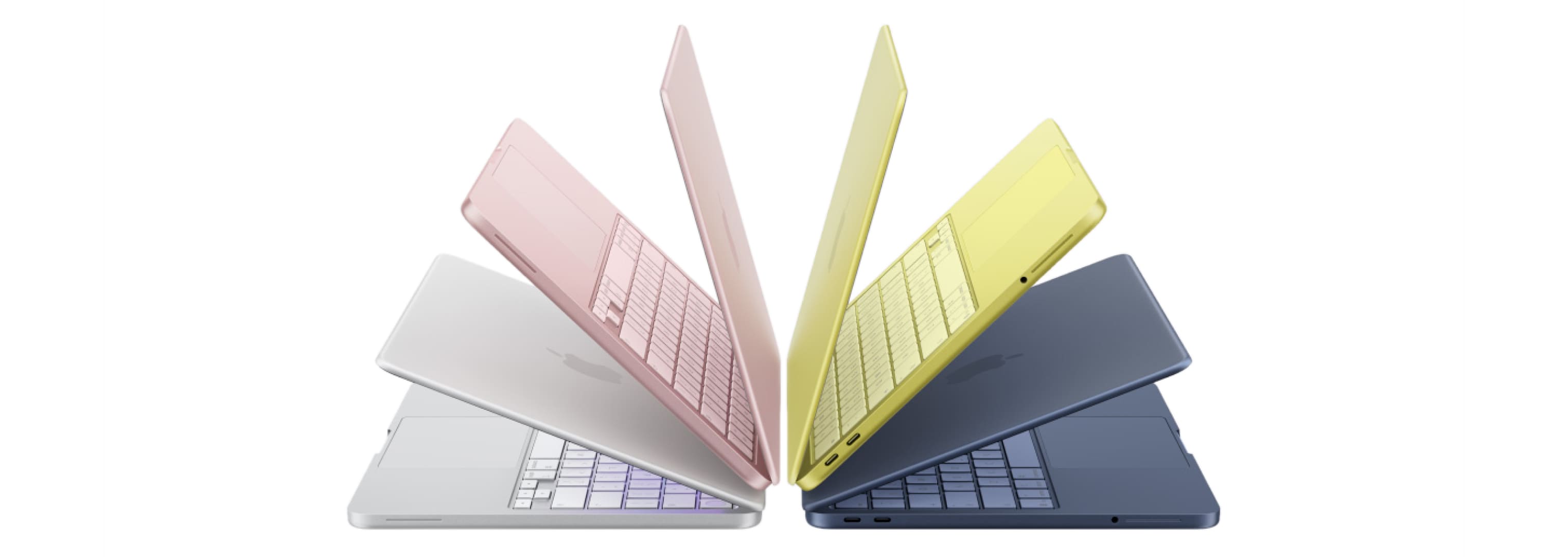 MacBook Neo сделан в алюминиевом корпусе и доступен в четырёх цветах: Silver, Blush, Citrus и Indigo. При этом Apple подчёркивает «durable recycled aluminum enclosure» и указывает, что устройство достигает 60% переработанного содержимого по массе. Вес — 1,23 кг, что делает его удобным для ежедневной переноски.