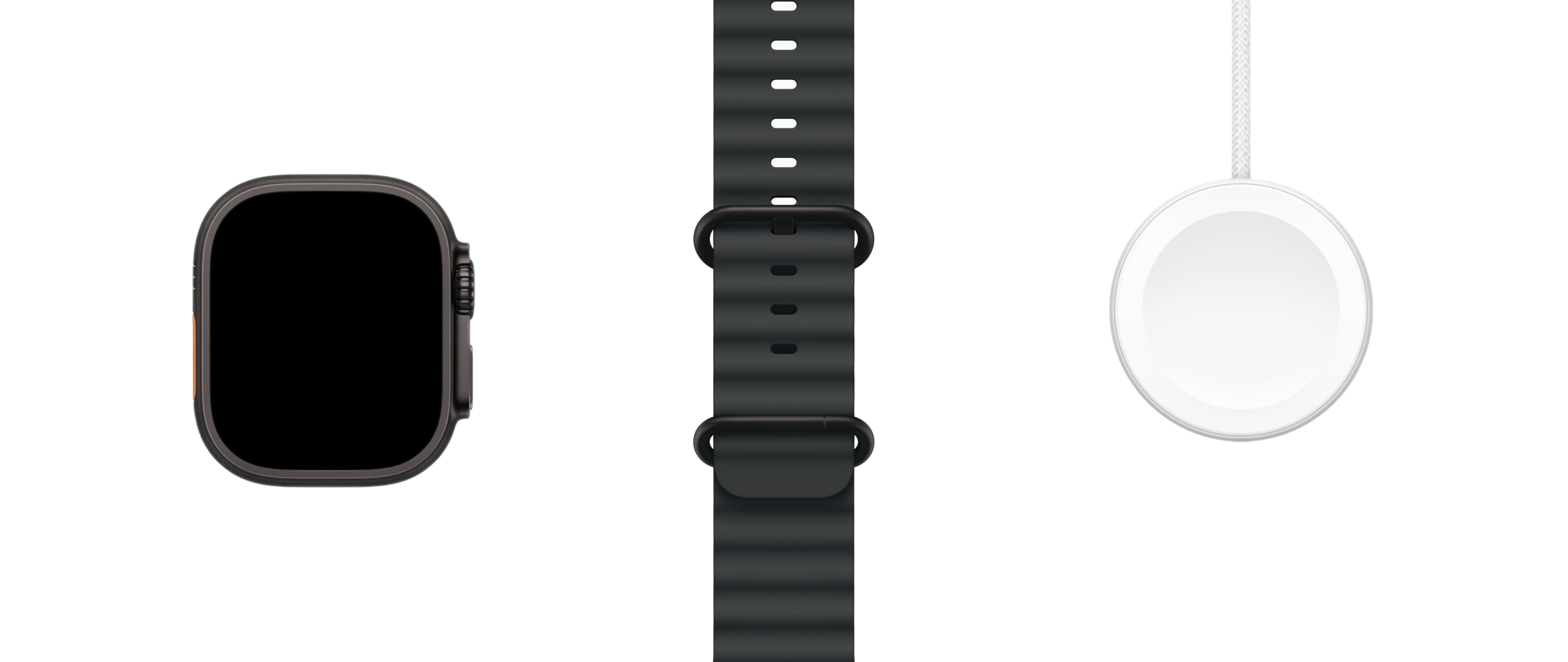 - Ocean Band: высокопроизводительный эластомер, трубчатая геометрия, титановые пряжка и петля, устойчивость к коррозии; подходит для водных видов спорта; доступен extension для гидрокостюма