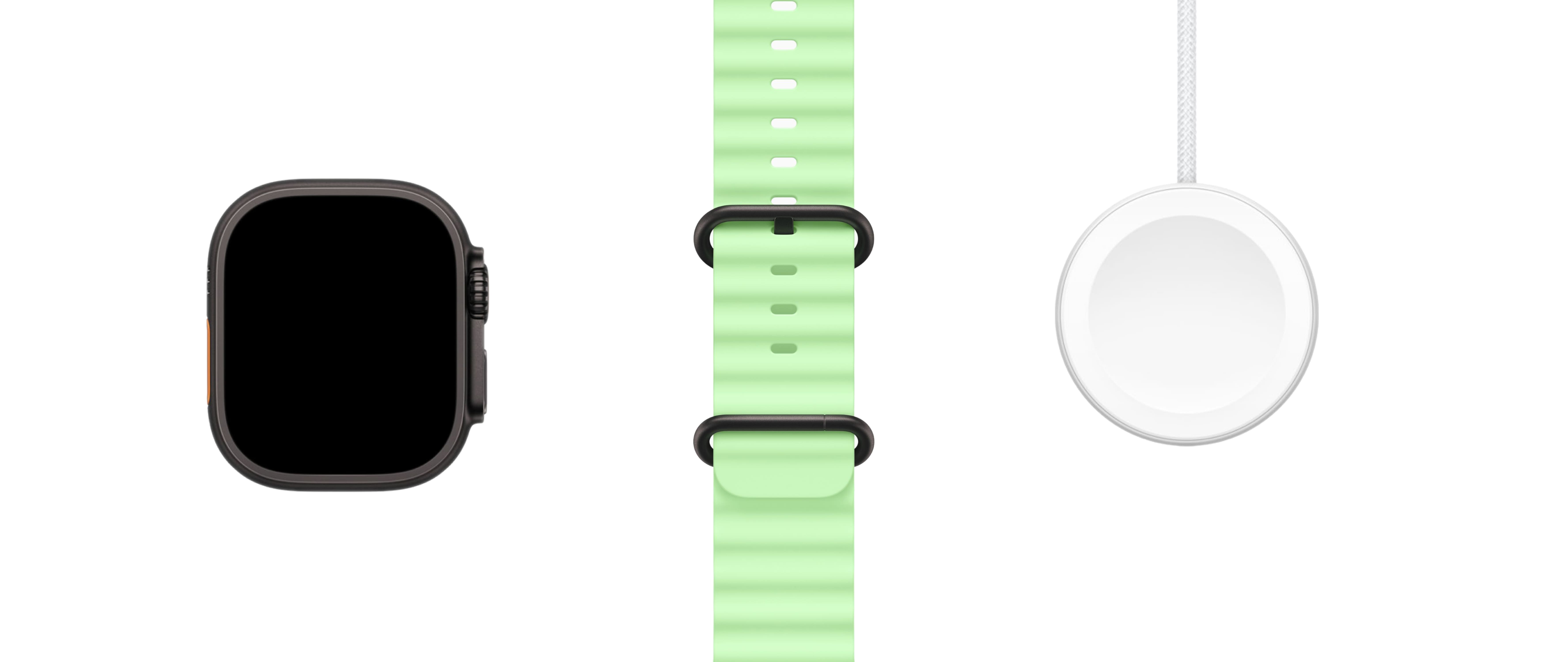 - Ocean Band: высокопроизводительный эластомер, трубчатая геометрия, титановые пряжка и петля, устойчивость к коррозии; подходит для водных видов спорта; доступен extension для гидрокостюма